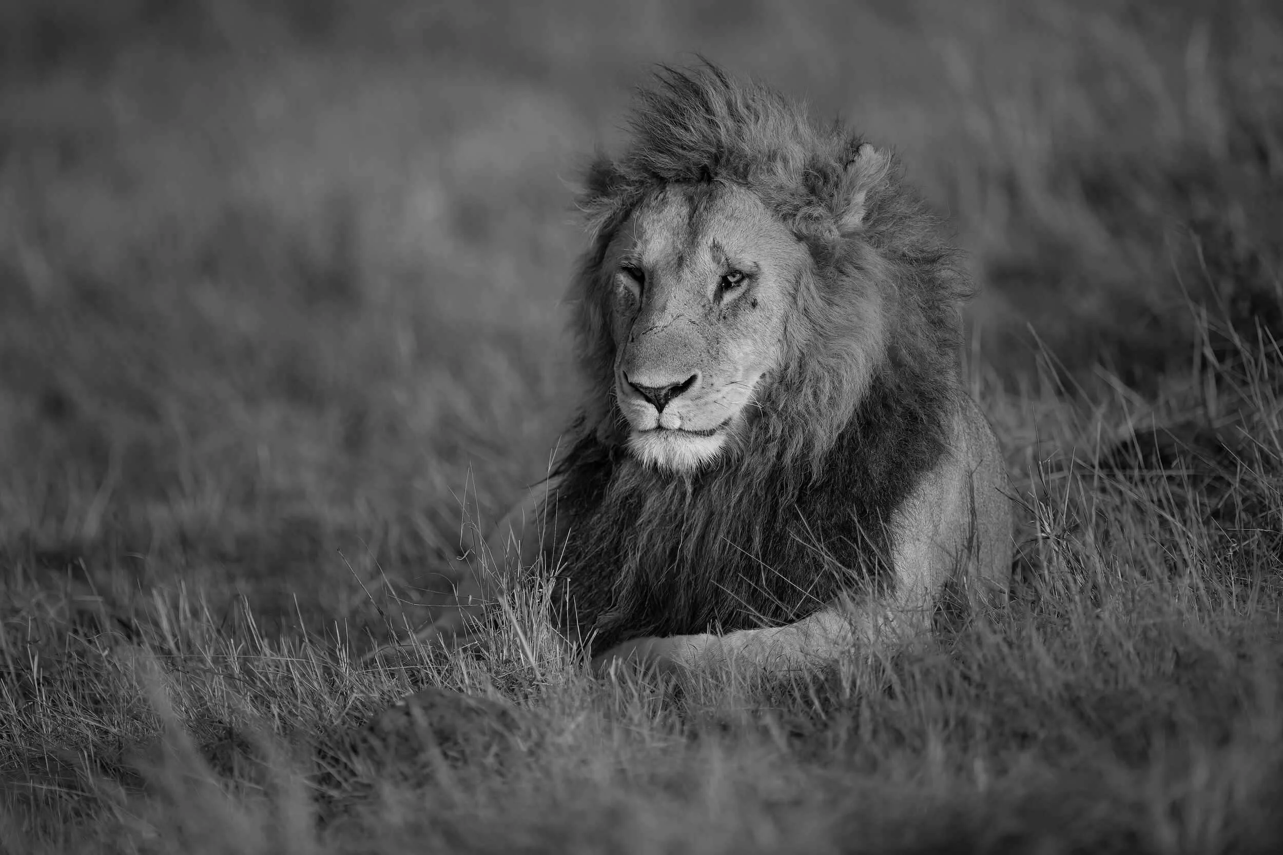 Convert that same image to black and white, and everything shifts. The mane separates from the grass. Shadows sculpt the face. The lion regains weight and authority. What was a record shot becomes a portrait.